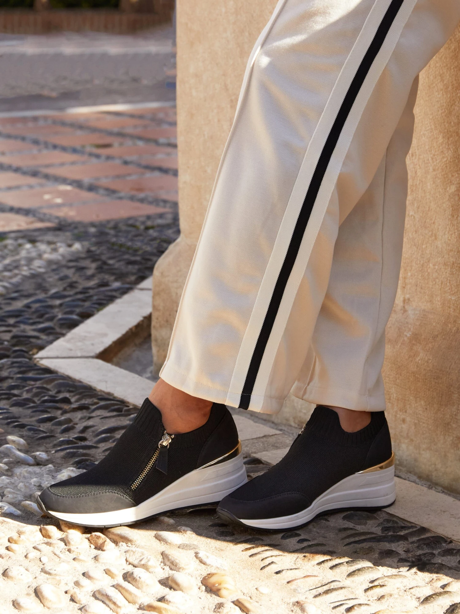 Step into sleek comfort and style with our Adler Trainer. Featuring flyknit material for a breathable, flexible fit, this trainer offers a modern edge with its zip detail. Elevate your look and stride with confidence in these trend-setting 6cm wedges, blending fashion and functionality seamlessly.