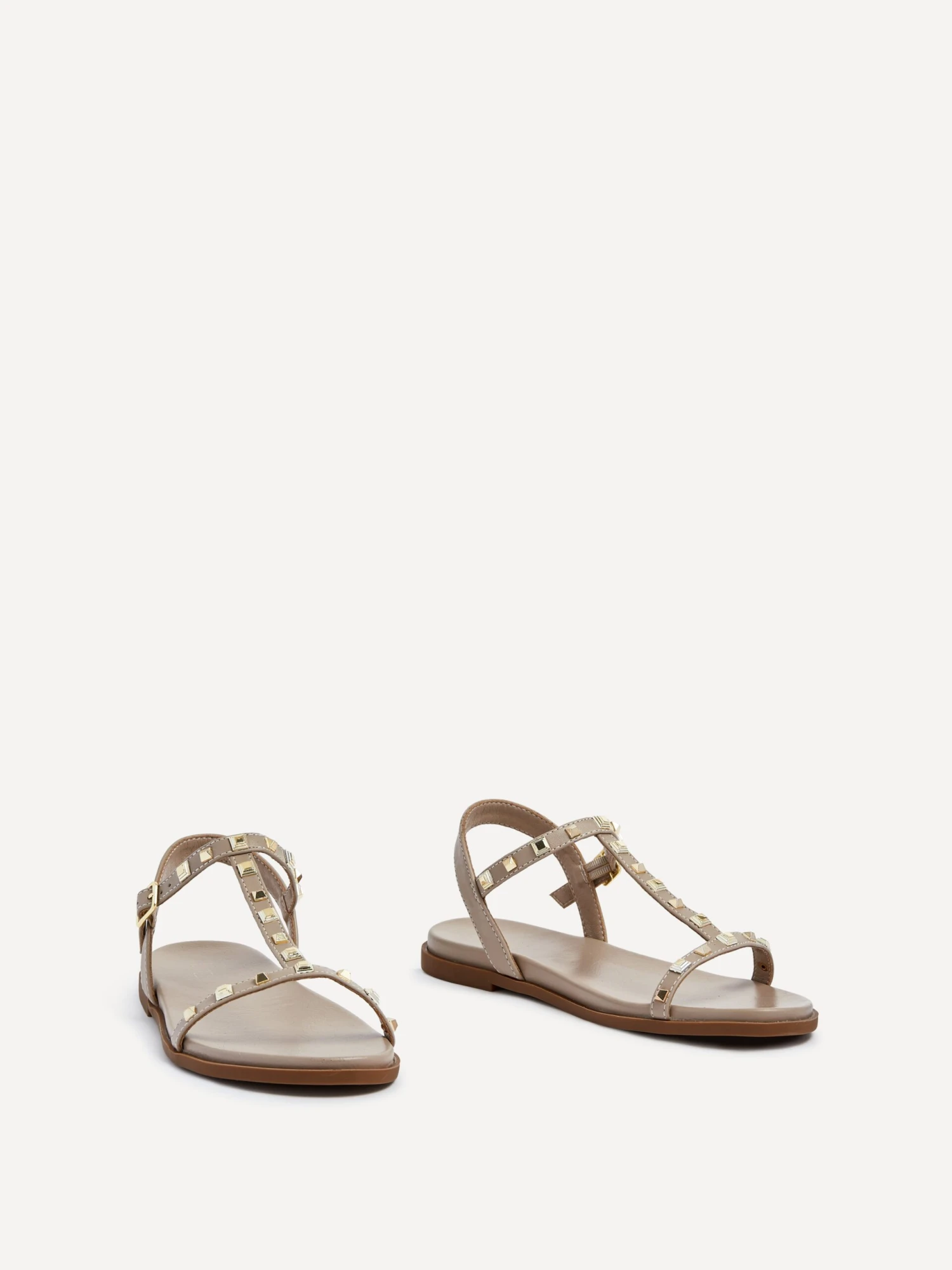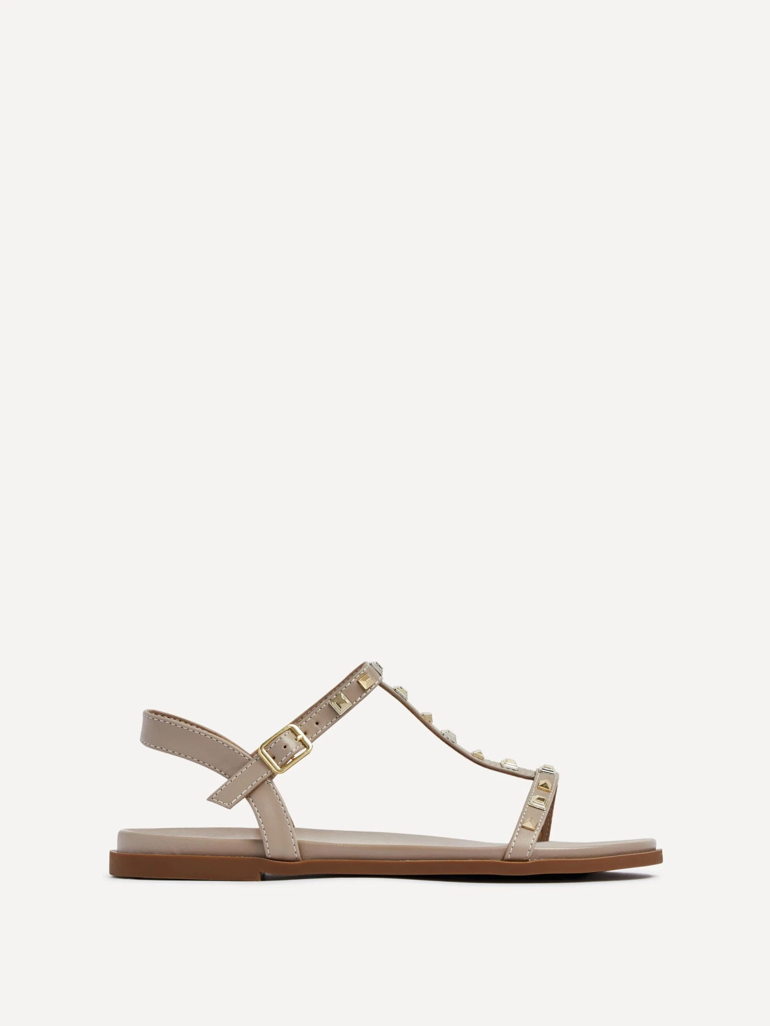 Introducing our Bliss Flat Sandals with a studded t-bar design and adjustable strap, making them the ideal addition to your summer footwear collection. Expertly crafted for maximum comfort, these sandals are a must-have for any wardrobe this season.