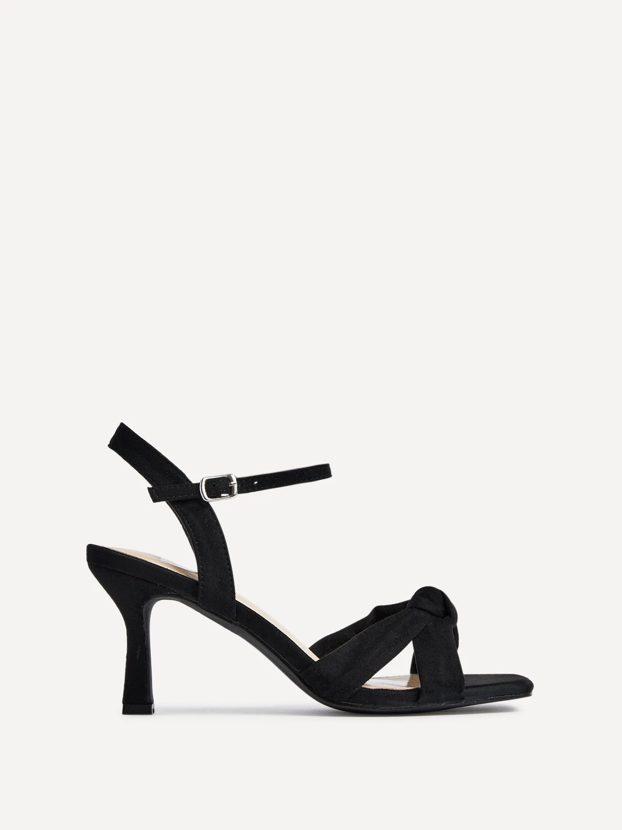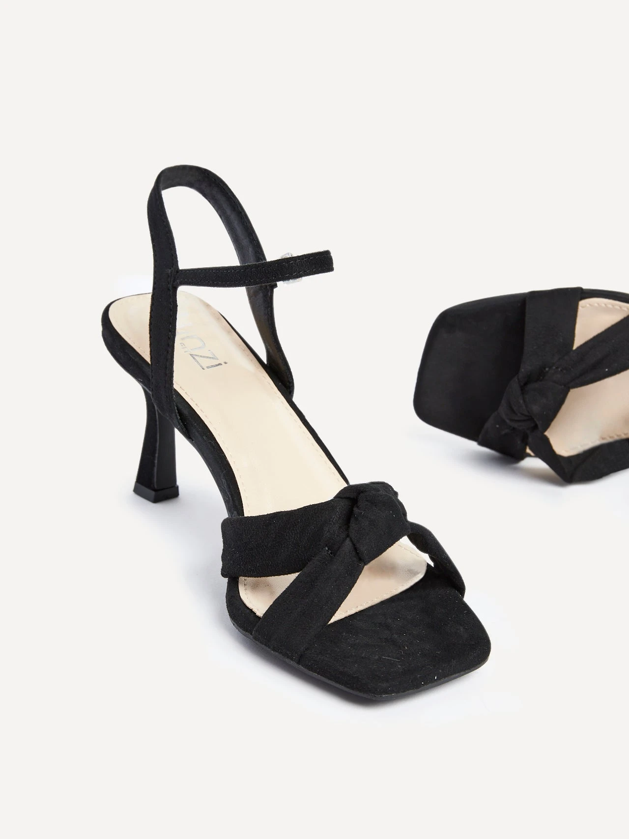 Our Linzi wide fit range is designed to let you show off your style in supreme comfort. Step out in style with our faux suede Favour heels, crafted with a luxe 9cm stiletto heel and a knotted front strap. Show off your style with an open toe design, perfect for weddings or any special occasion.Â