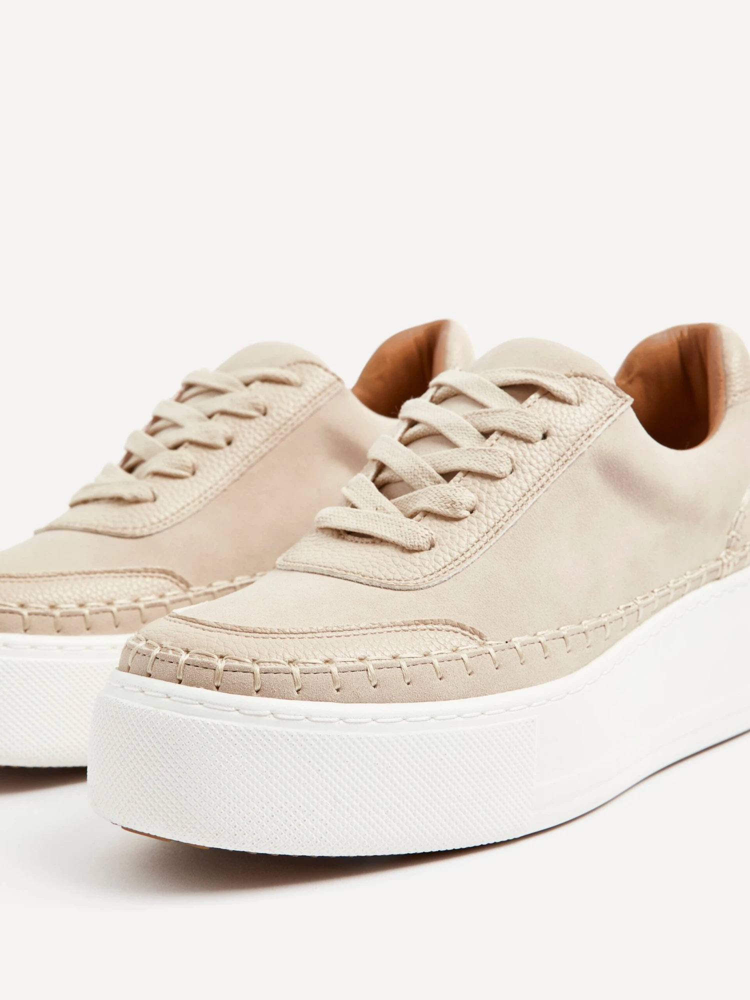 Harlem soft faux suede & leather mix weaved trainers boast a stylish 5.5cm platform sole, blending urban chic with comfort, making them a trendy choice for everyday wear.