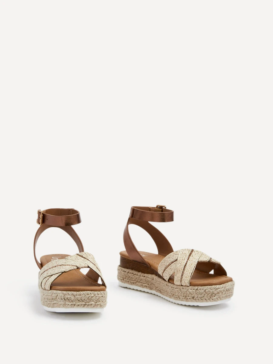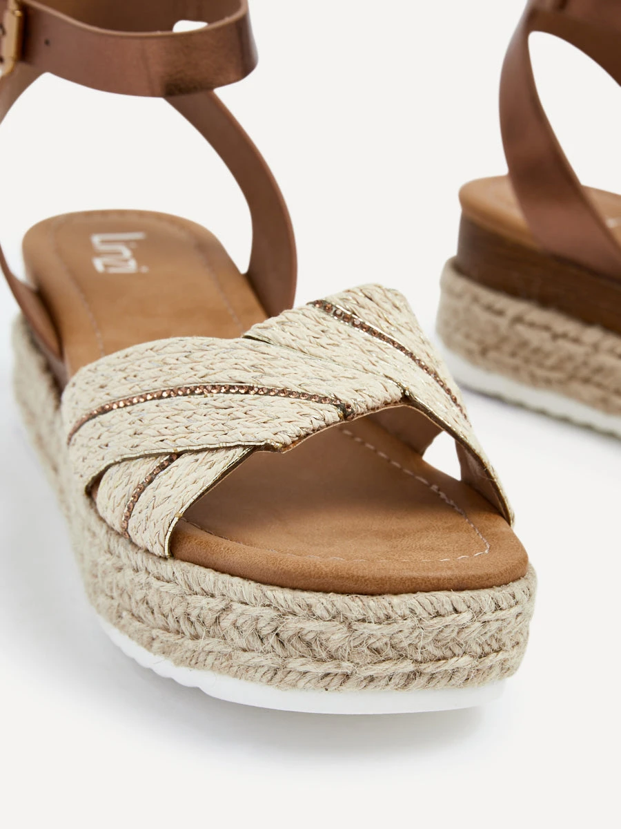 Our Hazel wedges seamlessly blend a timeless espadrille-inspired design with a touch of glam. Featuring a raffia front strap and a 5cm platform wedge offering height and comfort, making these wedges a perfect choice for a stylish statement.