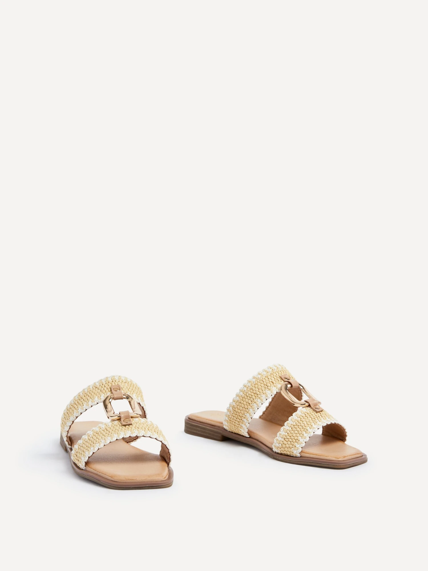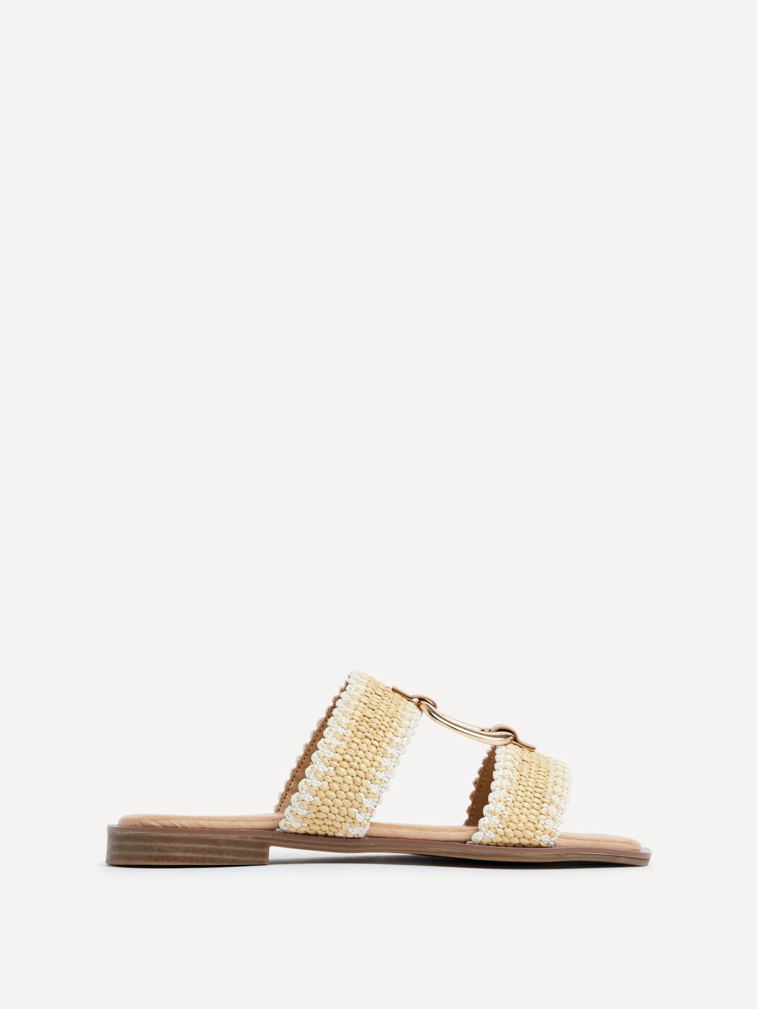 Introducing the JoJo Flat Sandal – a perfect combination of style and comfort. The extra padded footbed provides all-day comfort while the breathable woven two-tone upper adds a touch of elegance. The gold detailing adds a luxurious touch to your summer wardrobe.