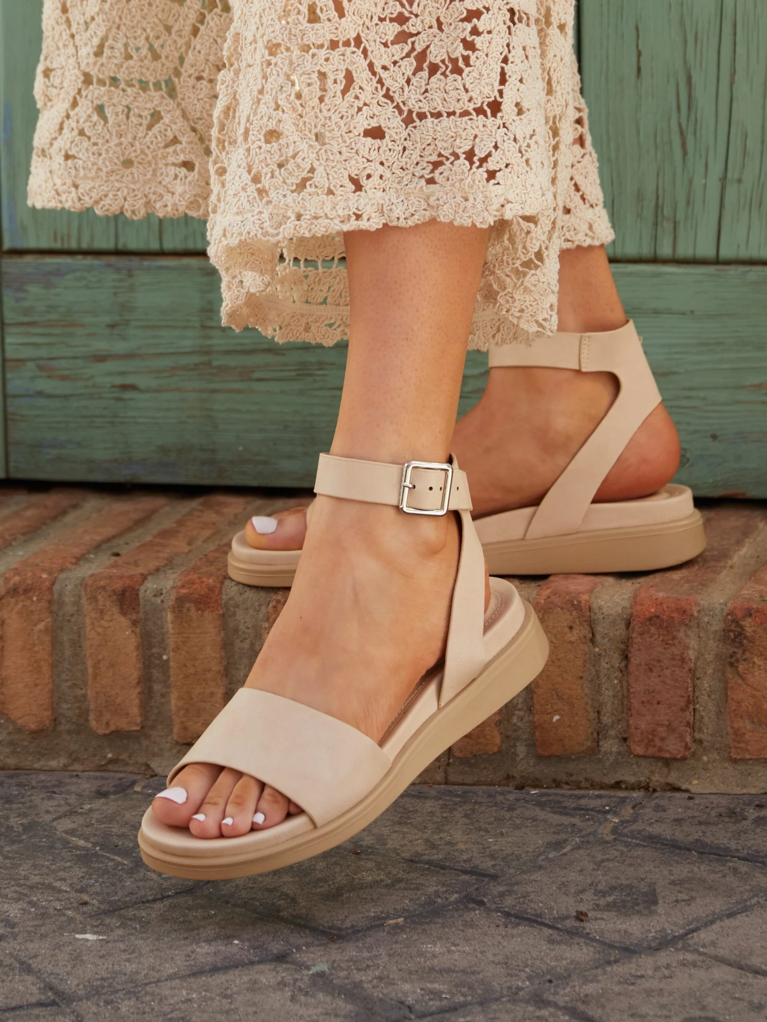 Transform your style with Kara Flatform Sandals! Embrace the ankle strap and enjoy a padded footbed for a secure fit. This sandal is the perfect addition to your Summer wardrobe, effortlessly completing any look!