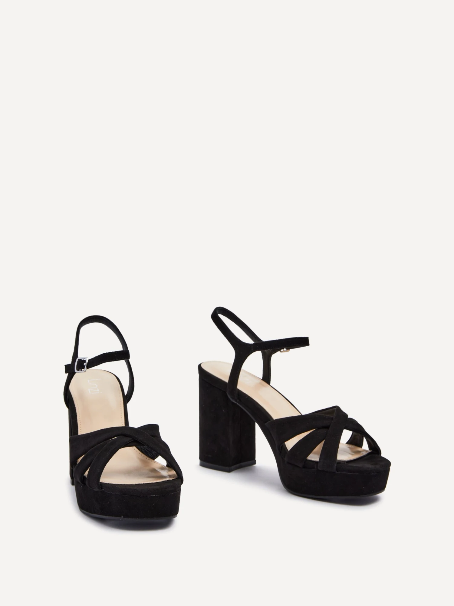 Discover the Keliah platform cross-over sandals, perfect for fashion-forward individuals who value both style and comfort. These sandals boast a sleek cross-over design, sturdy 9cm block heel, and our infamous padded insock ensuring a modern look and day-long comfort.