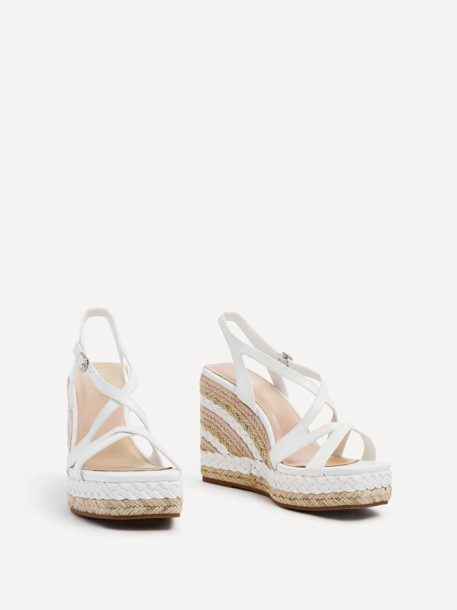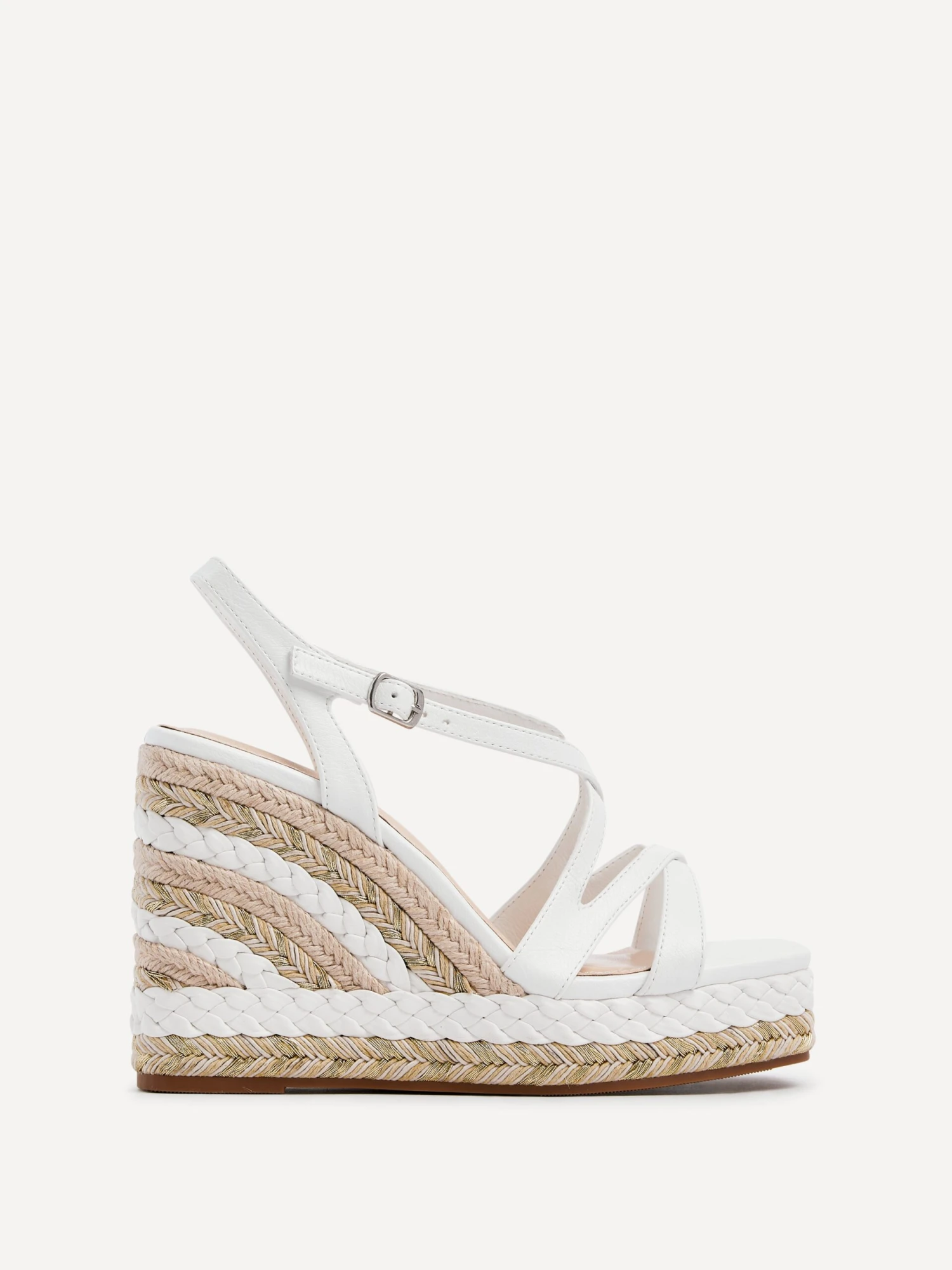 Amplify your style with these fashion-forward, head-turning wedges. Combining comfort and glamour, our Marbella Wedges feature intricate metallic rope detailing and an adjustable slingback ankle strap.