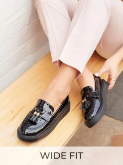 Elevate your look with the Naomi loafers from the Linzi Wide Fit Collection! These luxe slip-on loafers boast a soft faux patent finish with a timeless tassel detail, plus a sturdy rubber sole for unbeatable comfort and a lasting style.