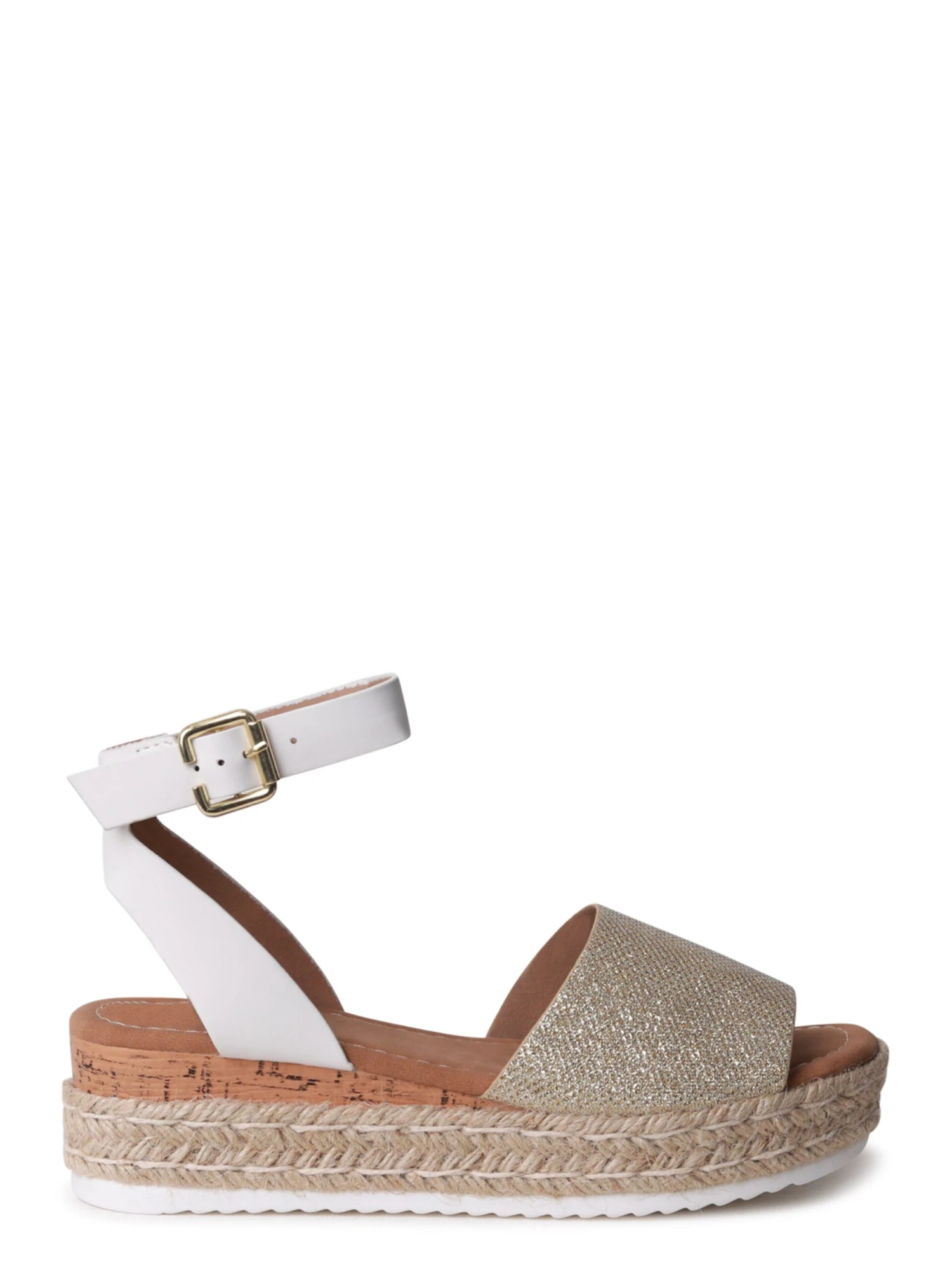 Take your warm-weather styling to the next level with our espadrille inspired Natini flatform. With a featured gold glitter front strap, this style is perfect to take you from day to night.Â