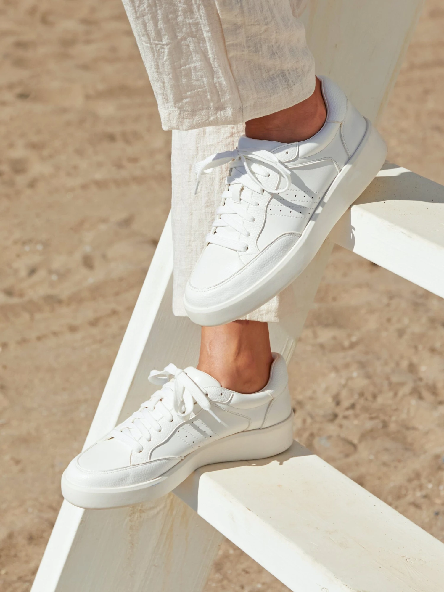 Meet the Romie white two-tone lace-up Trainer! Combining style and comfort, these trainers feature a sleek two-tone design and a trendy lace-up closure. Elevate your casual look with a touch of athletic sophistication!