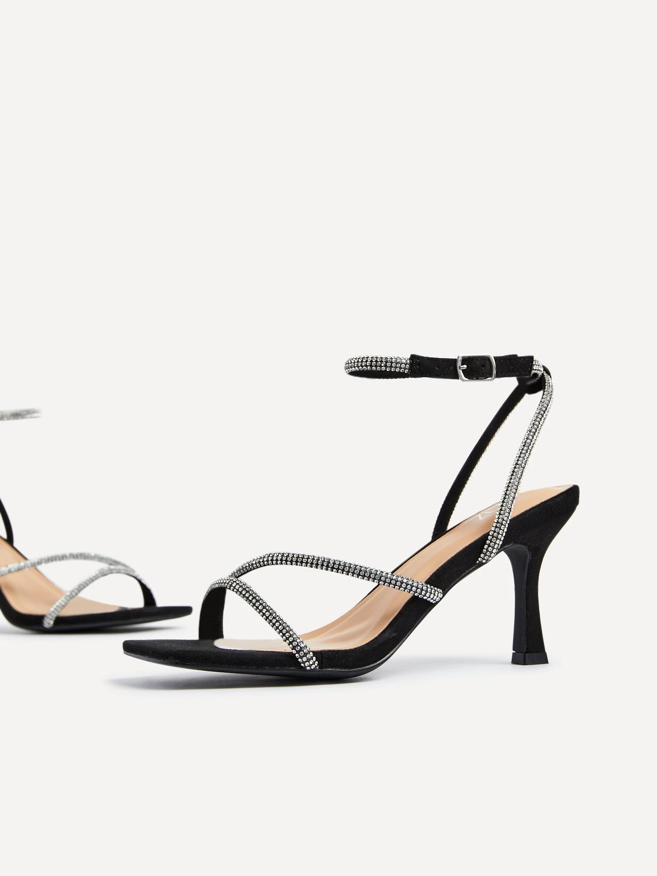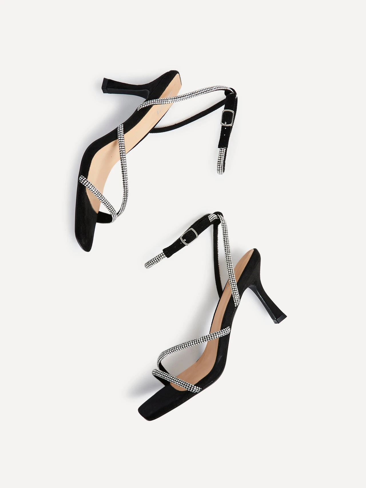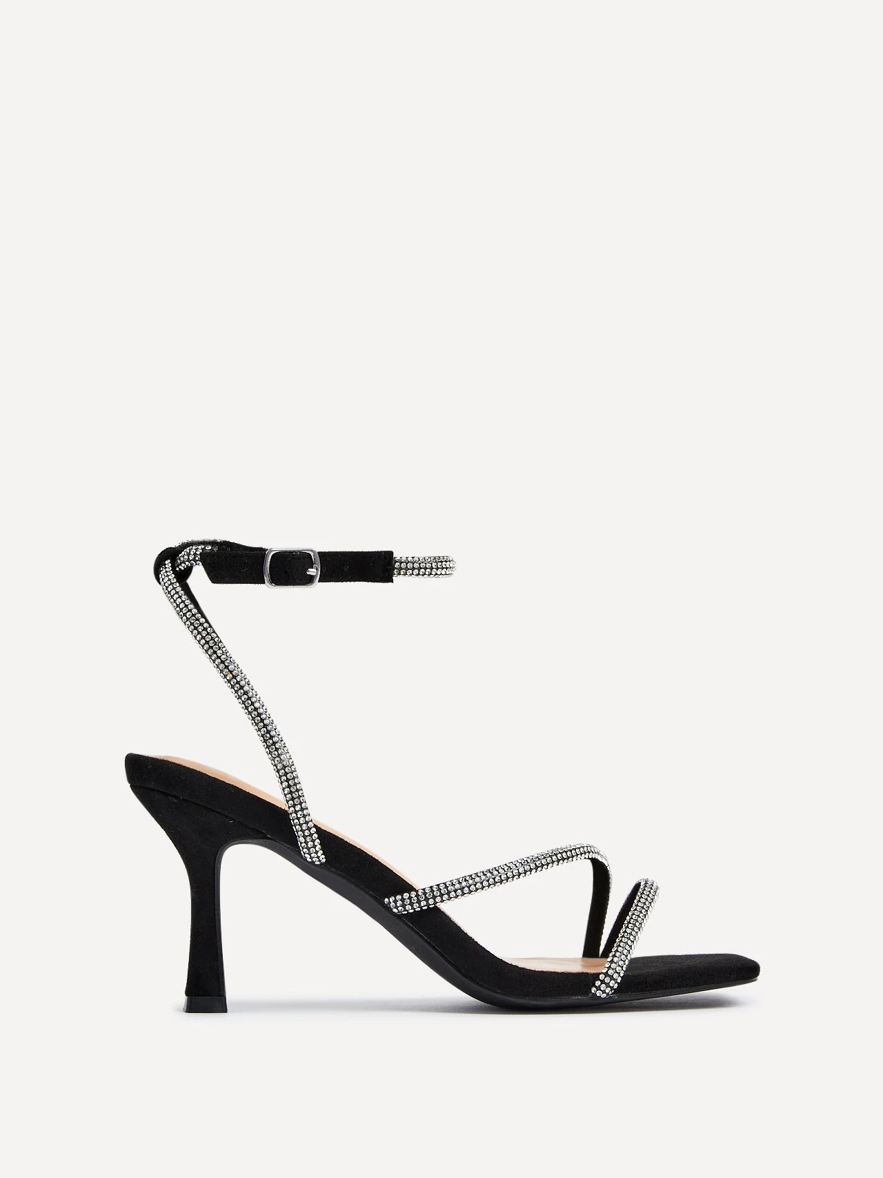 Our Linzi wide fit range is designed to let you show off your style in supreme comfort. Crafted from a soft faux suede, these elegant heeled sandals feature a wrap-around diamante ankle strap and an 8 cm heel.
