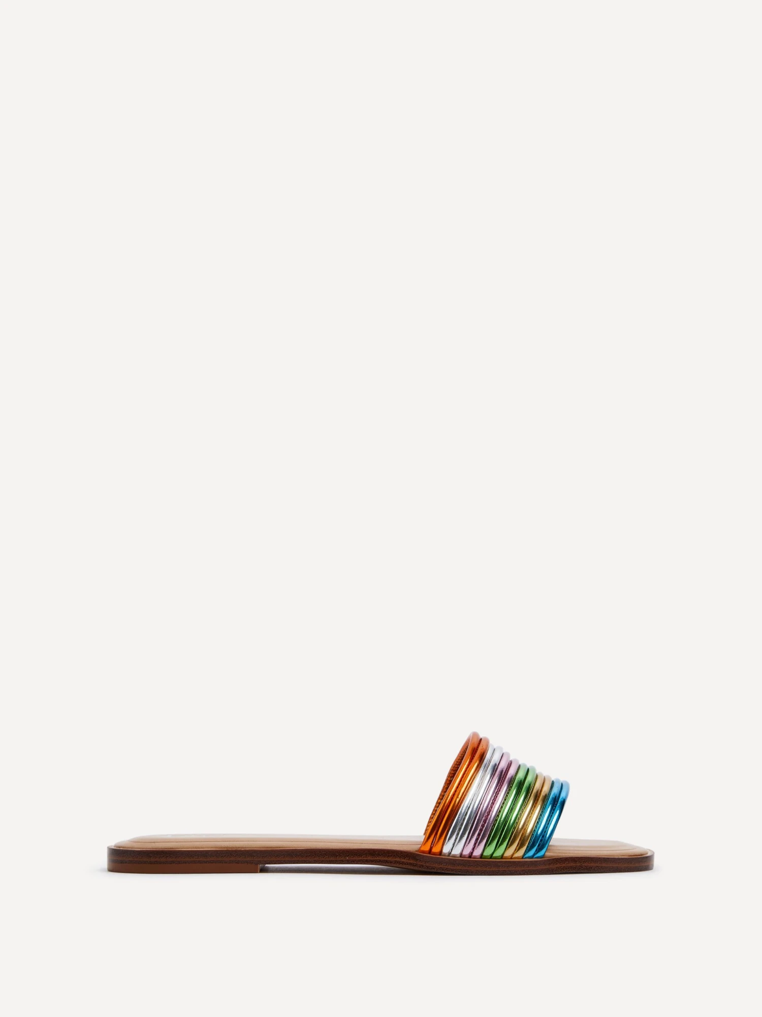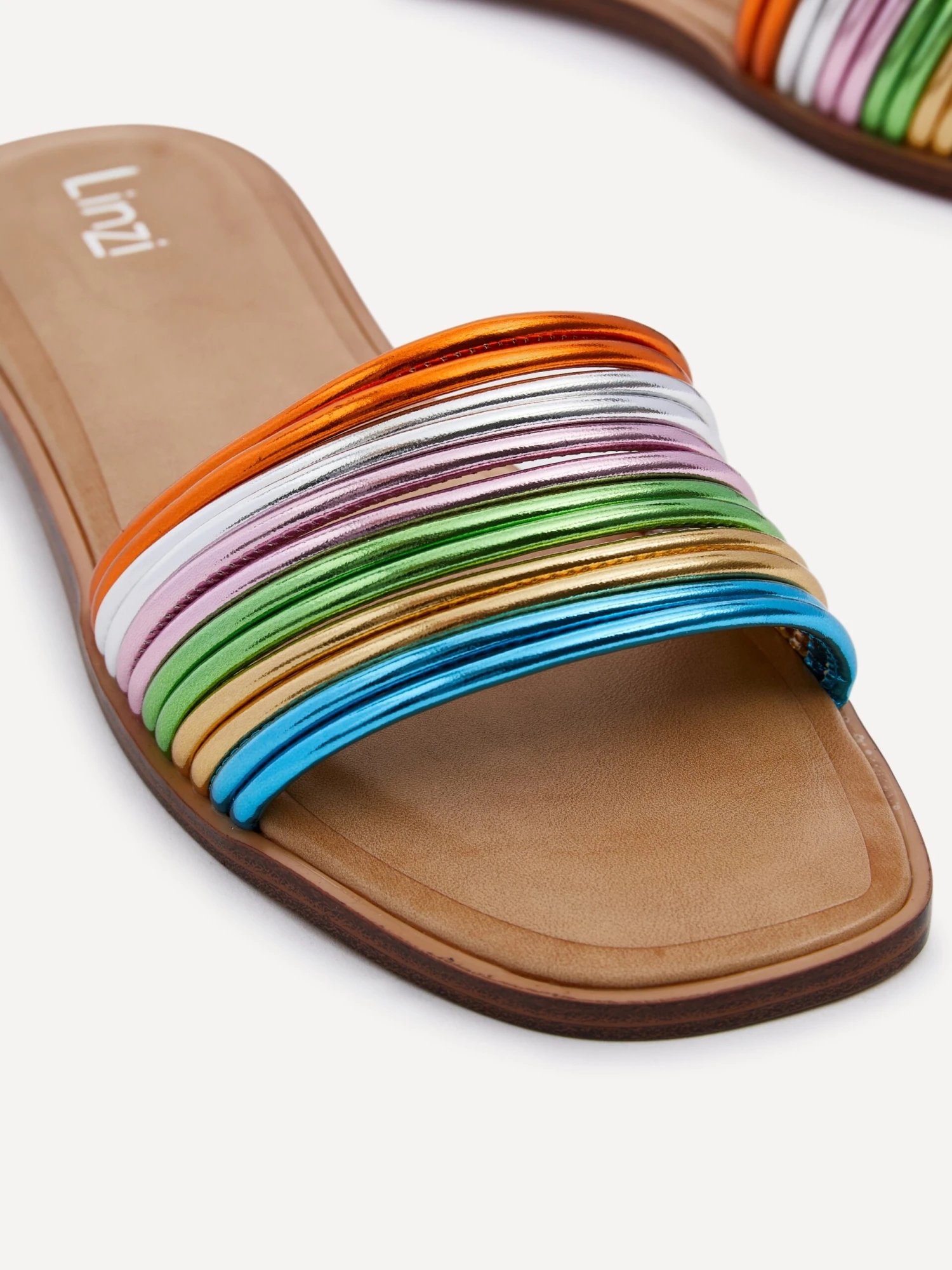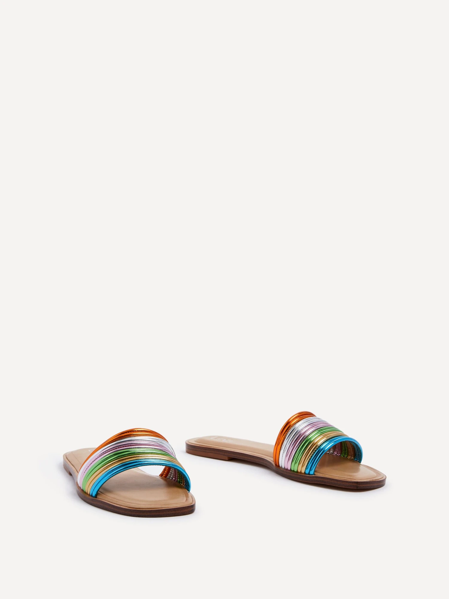 Transform your look with effortless elegance. The stunning rainbow design on the front strap adds a touch of magic to any outfit, while the padded insock ensures all-day comfort.