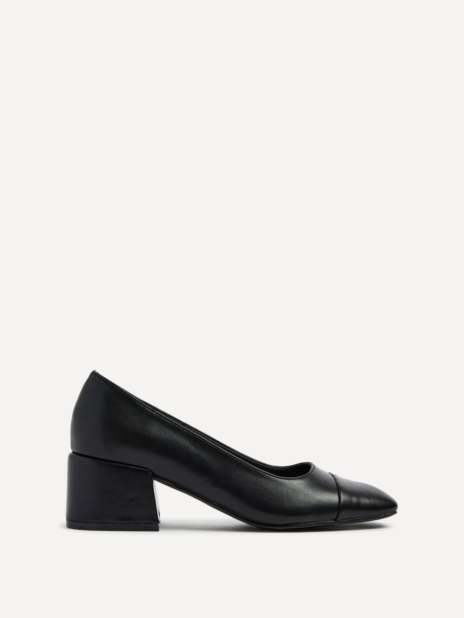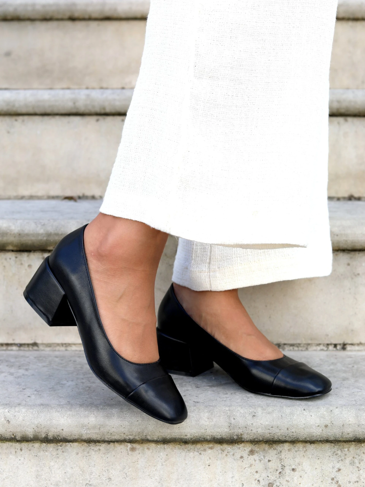 Our soft faux leather Valerie court shoe combines sophistication and modernity with its soft square toe design and contrast toe cap, creating a stylish and chic look for any occasion.