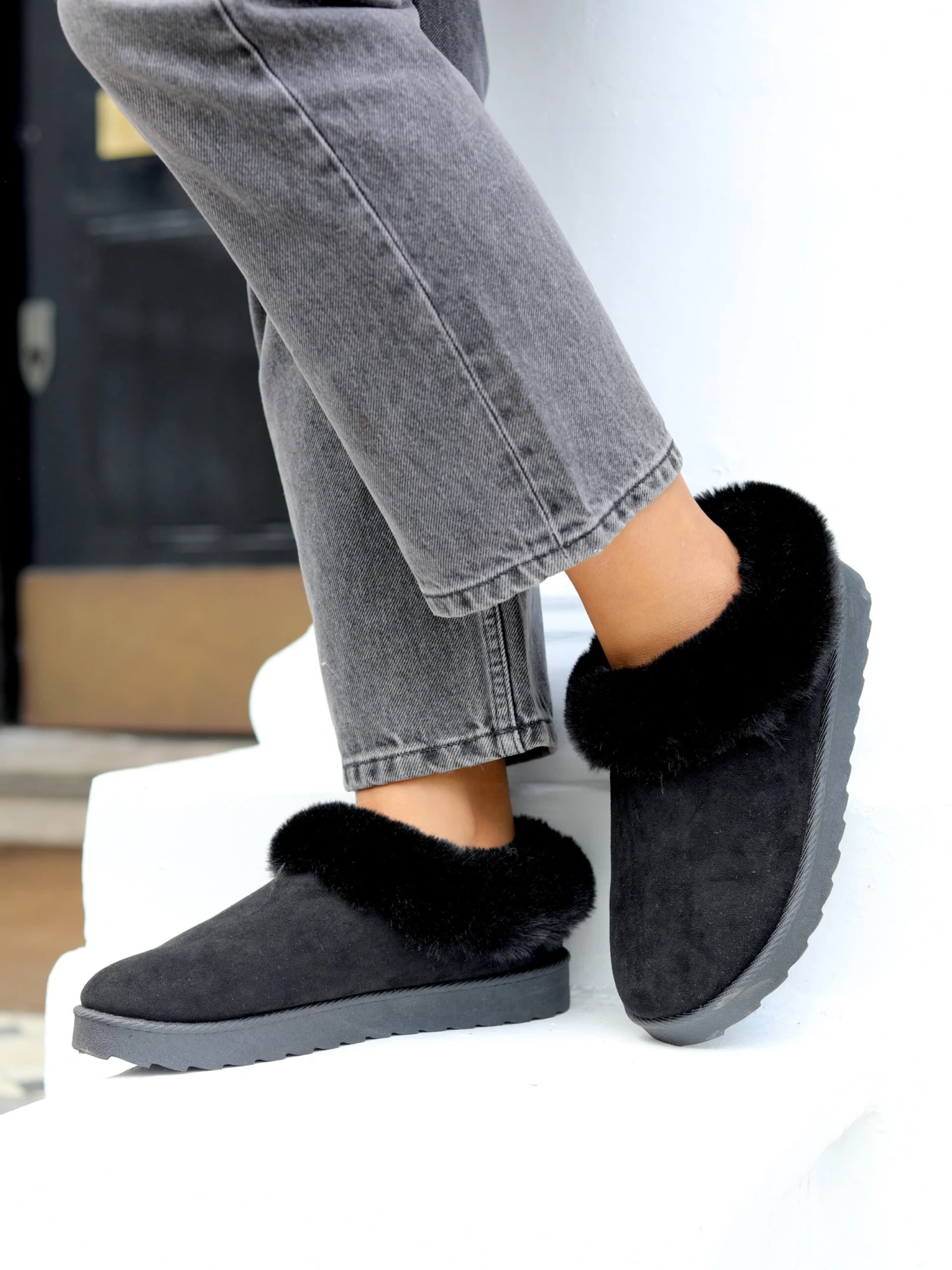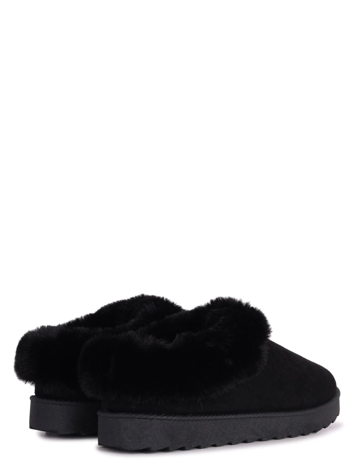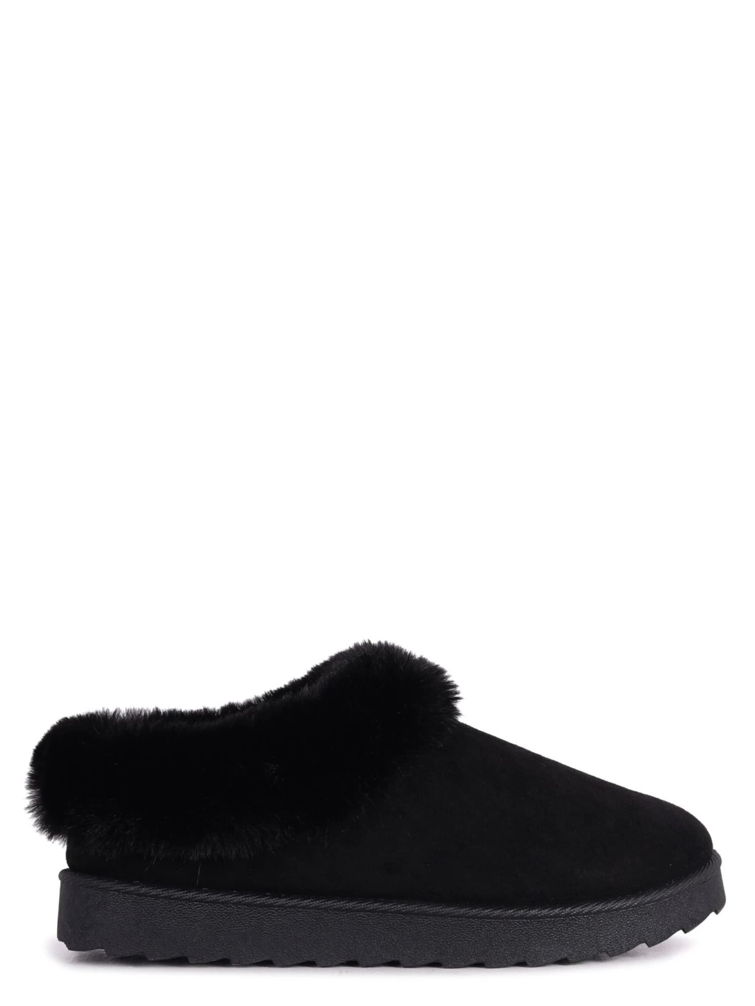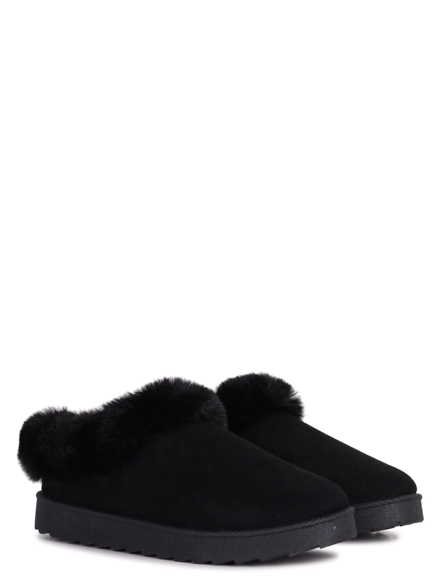 Extra soft faux suede, faux fur fully lined outdoor slipper. Complimented with luxury faux fur outer detail. An easy slip-on style to keep you warm and feeling comfortable all day.